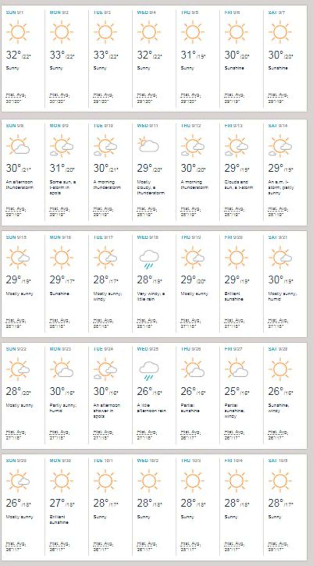 Na Peloponeskom ostrvu se očekuje septembar idealan za letovanje – očekuju se pravi letnji sunčani dani, sa temperaturama od 28 do 36 °C