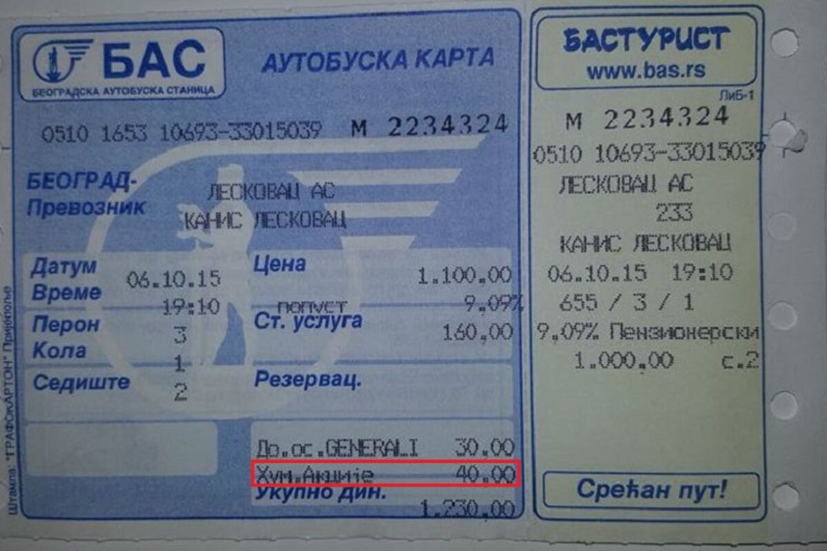 karti za međugradsku vožnju naplaćeno je dodatnih 40 dinara za humanitarnu akciju.