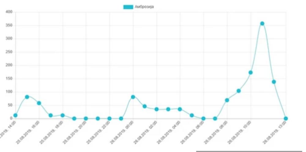 Ono što je jasno vidljivo iz grafikona koji su dostupni na adresi www.realforall.com, najveće koncentracije polena ambrozije beleže se u periodu od 9.00 do 13.00 časova.