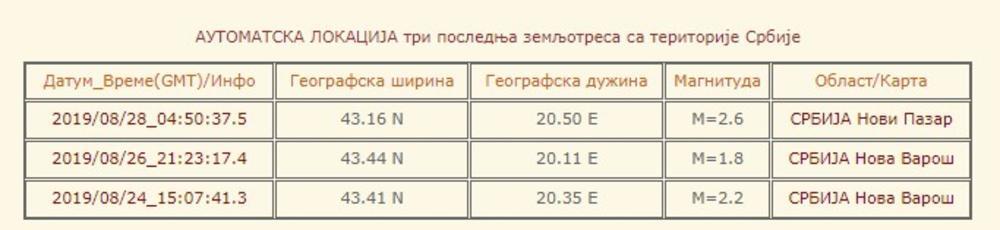 Epicentar zemljtresa bio je 3km severno od Novog Pazar u pravcu Golije.