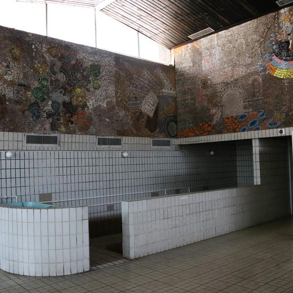 U jednoj od sala u sklopu bolnice nalaze se dva bazena (zatvorena), okružena zidnim mozajicima, impresivnih po svojoj veličini, lepoti i umetničkoj vrednosti. Oni su delo akademika prof. Srbinovića.