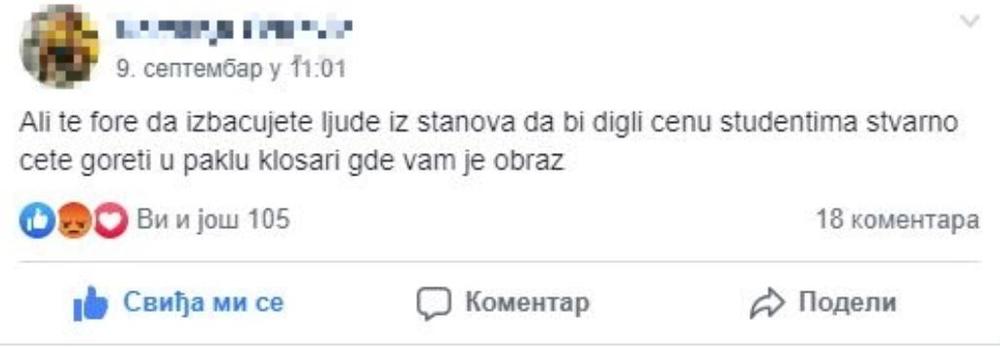 Pored agencija, studenti stanove traže i na društvenim mrežama, gde takođe, dele svoja iskustva, a mnogi su se u Fejsbuk grupama požalili na ove i slične probleme: