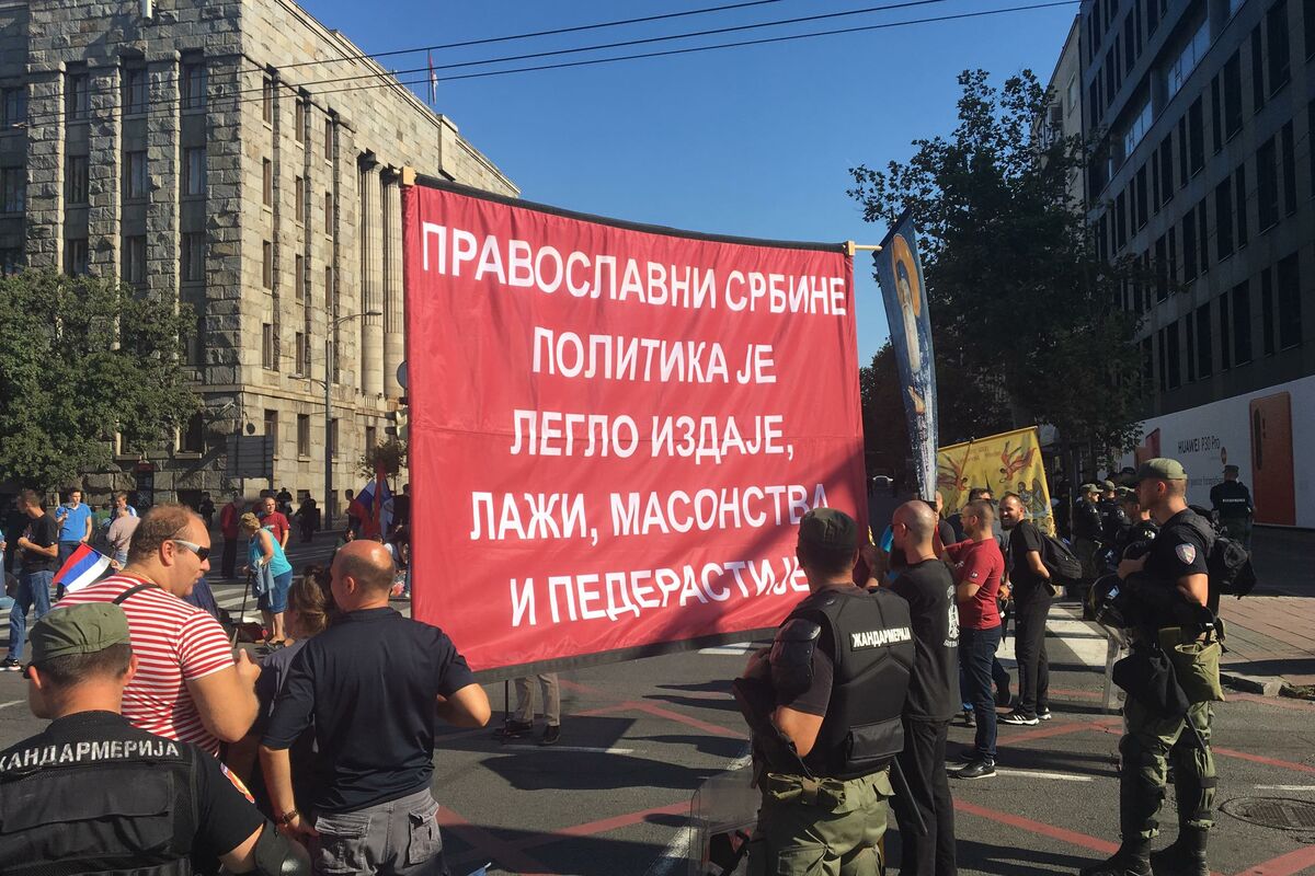 Protivnici Prajd šetnje i dalje se ne povlače i nastavljaju da pevaju patriotse pesme.