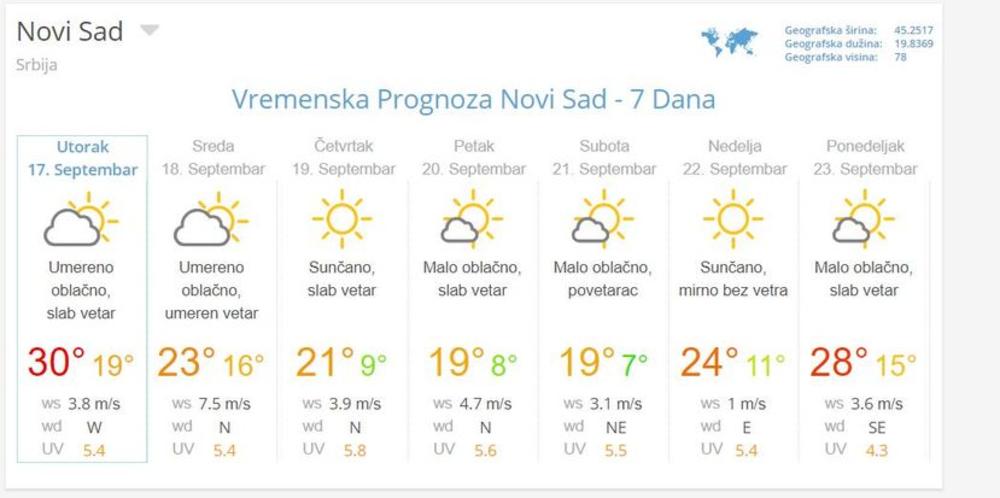 - Naoblačenje i jače zahlađenje sa kišom i pljuskovima, ponegde praćenim grmljavinom i umerenim i jakim severozapadnim vetrom, zahvatiće večeras i tokom noći severne i zapadne krajeve. Na severu i zapadu lokalno se očekuje da padne i oko 20 mm kiše za kratak vremenski period. U drugom delu noći i sutra ujutru brzo će se proširiti i na ostatak Srbije - upozoravaju iz RHMZ-a.