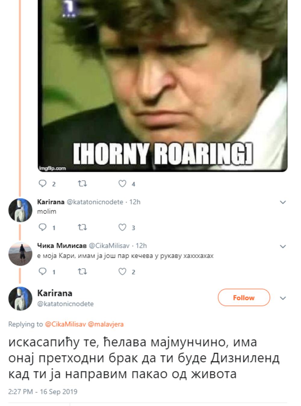 Srbin pokušao da smuva tviterašicu, a onda se u razgovor uključila njegova žena! ISKASAPIĆU TE, ĆELAVA MAJMUNČINO!
