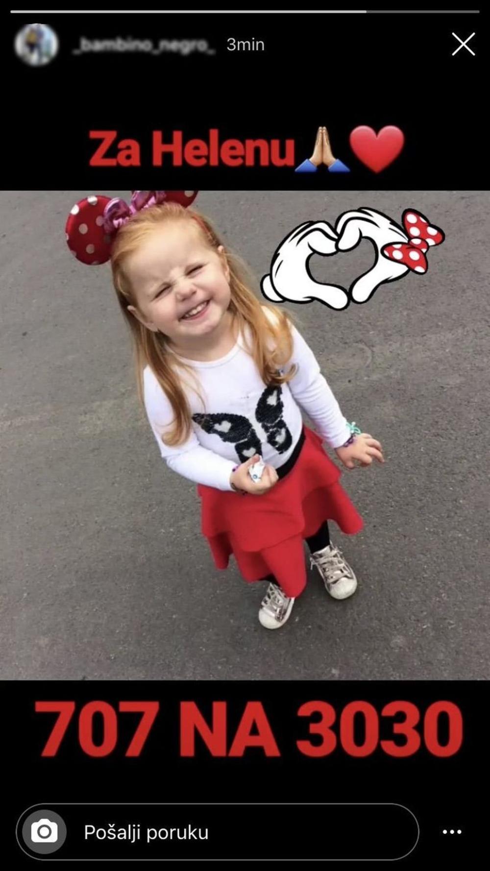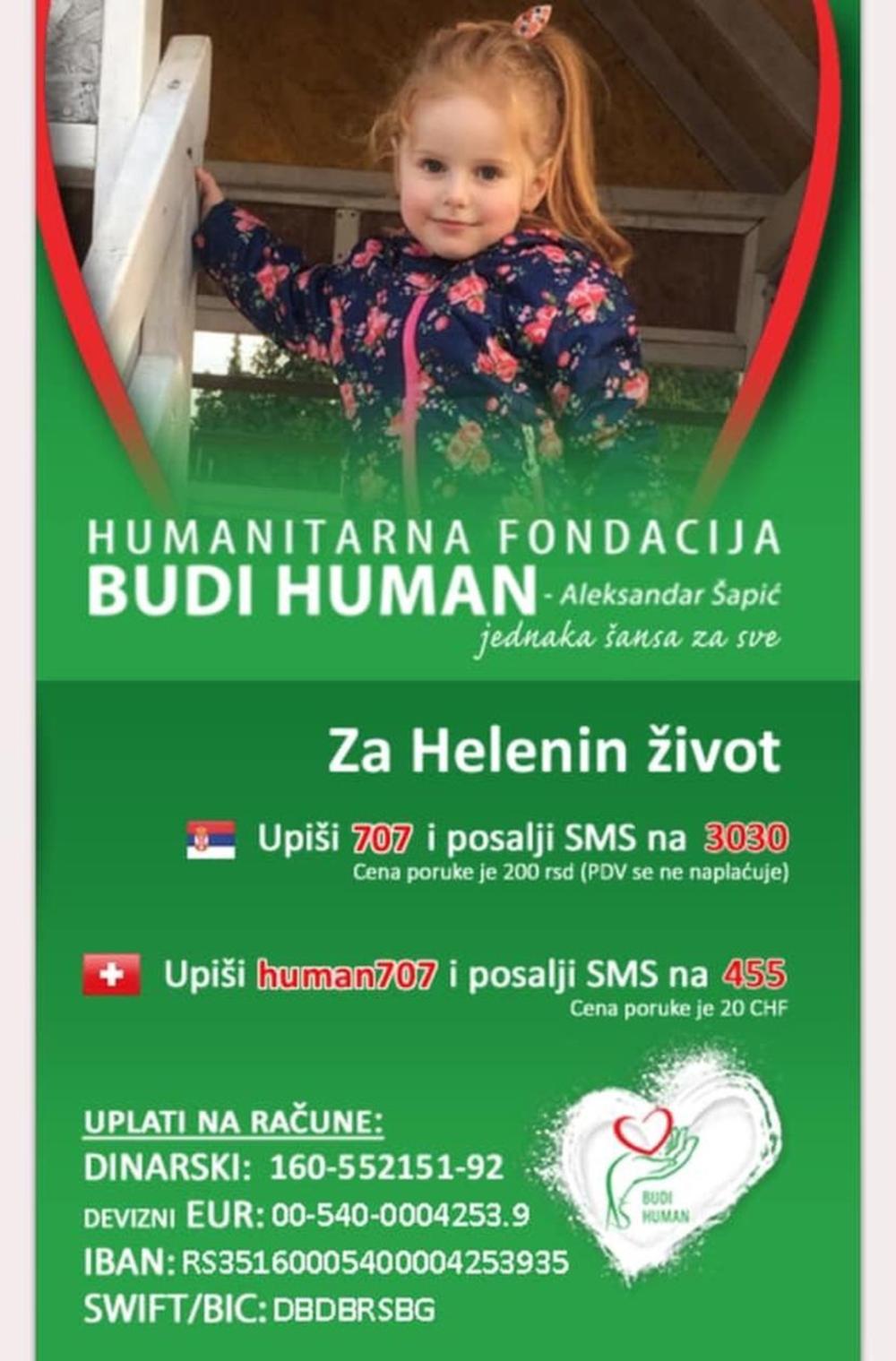 Za Helenin život! Budimo humani! Pomozimo Heleni! Slanjem SMS poruke: Upišimo 707 i pošaljimo SMS na 3030