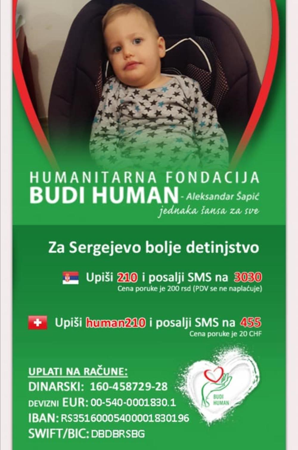 Humanitarna fondacija BUDI HUMAN – Aleksandar Šapić nastavlja prikupljanje novčanih sredstava za Sergeja Andrejevića (2015).