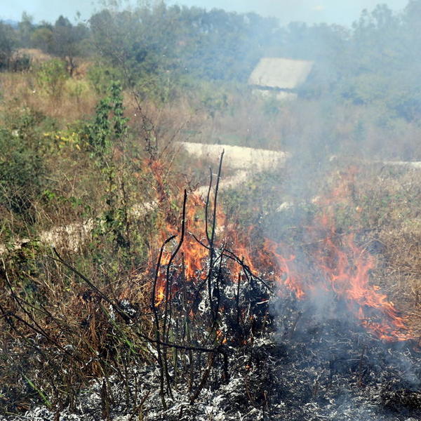 U delu Ćuprije, u blizini železničkog mosta, na međunarodnoj pruzi Beograd - Niš, preko Velike Morave, na velikoj površini, gori nisko rastinje i sašušena trava, a gust dim vidi se na nekoliko kilometara.