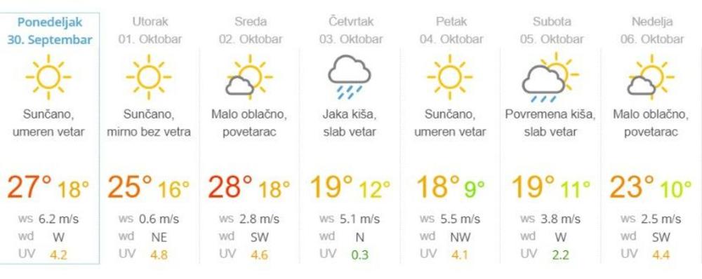 U sredu pretežno sunčano i veoma toplo sa maksimalnom temperaturom od 26 do 30 C.