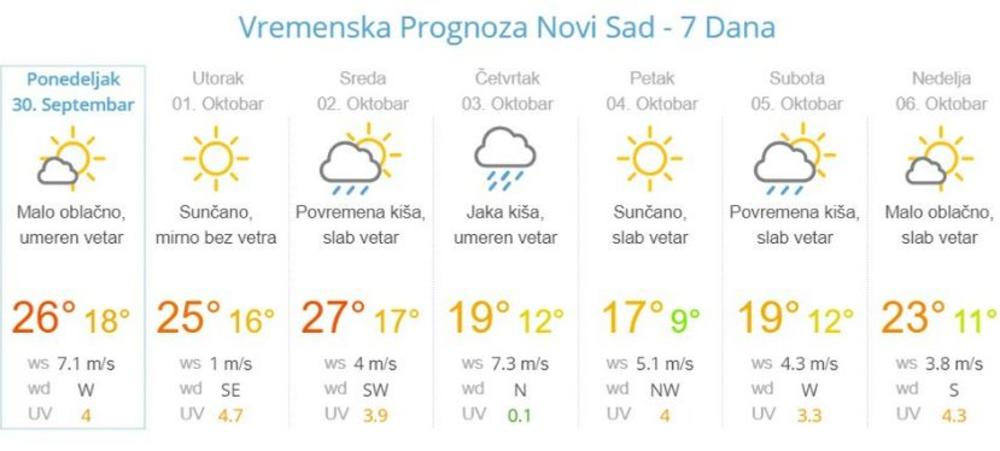 I u Novom Sadu će zahladneti, pa će u petak najviša dnevna temperatura iznositi samo 17 stepeni, dok će jutarnja biti devet.