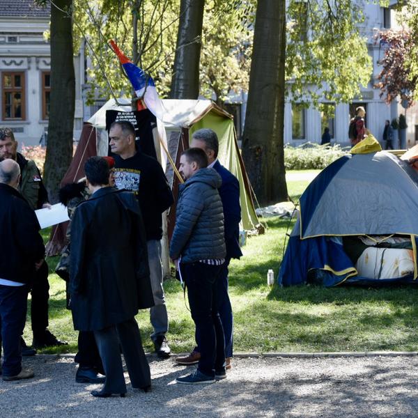 Ekipa Espresa je zatekla veterane kako sede u Pionirskom parku u šatoru. Tu su stacionirani već nekoliko dana i kako su nam rekli tu će boraviti i narednih dana dok ih predsednik Republike ne primi na razgovor.
