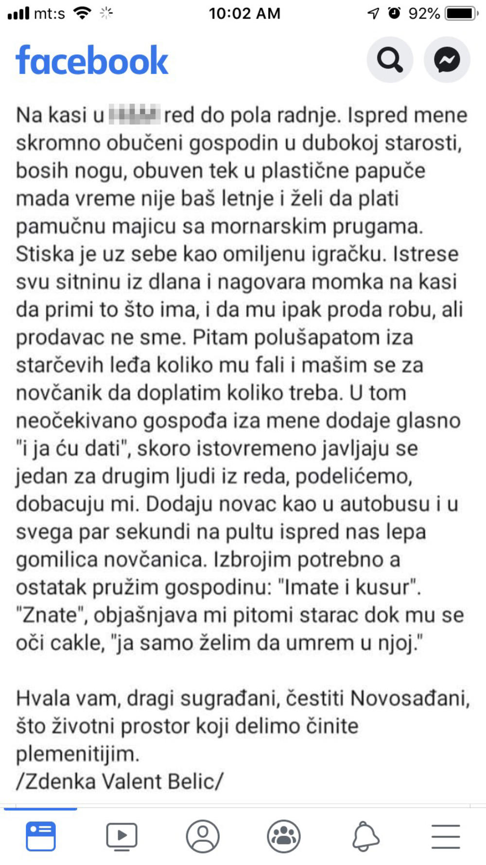 Nova situacija koja je rasplakala Srbiju prepričana je na društvenoj mreži Fejsbuk, a dolazi iz Novog Sada.