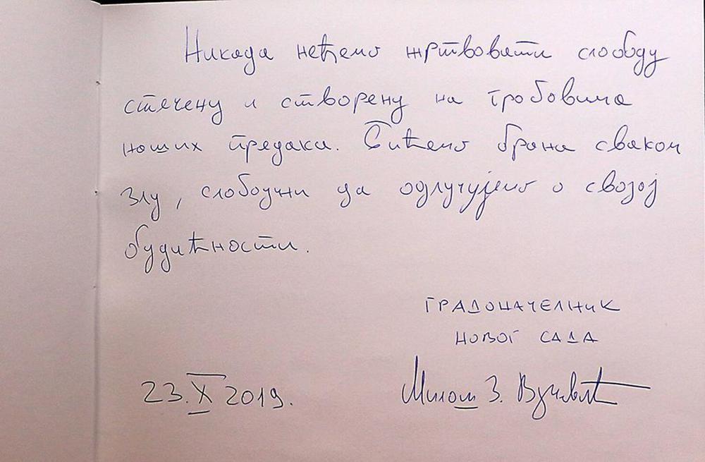 - Zahvaljujući pobedi, rekao bih dobra nad zlom, koja je izvojevana prilikom oslobođenja našeg grada 23. oktobra 1944. godine, mi danas možemo da živimo i uživamo u modernom i slobodnom Novom Sadu