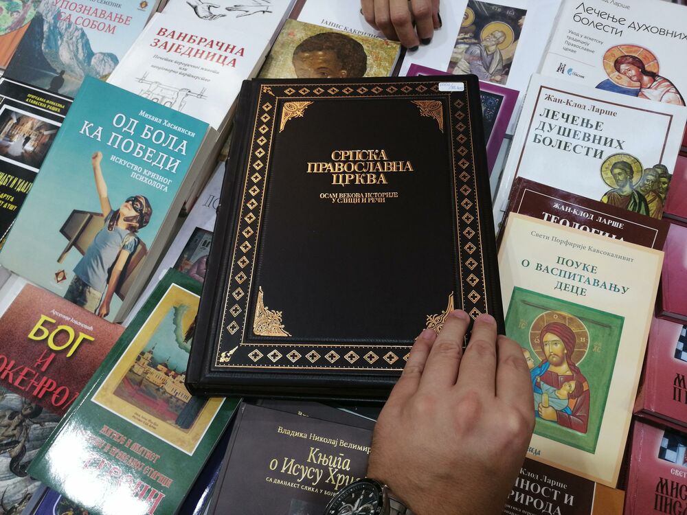 Knjiga pod nazivom: "Srpska pravoslavna crkva - osam vekova istorije u slici i reči", koja košta 38.400 dinara je najskuplja knjiga koja se ove godine izlaže na štandovima.