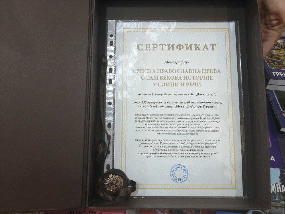 Mnogi će se pitati zašto toliko košta? Odgovor je veoma jednostavan, stranice ove knjige obložene su 14-to karatnim zlatom, a korice su od prave kože sa zlatotiskom. U toj knjizi je sadržano svih osam vekova SPC, od priča, istorije do fantastičnih umetničkih ilustracija.