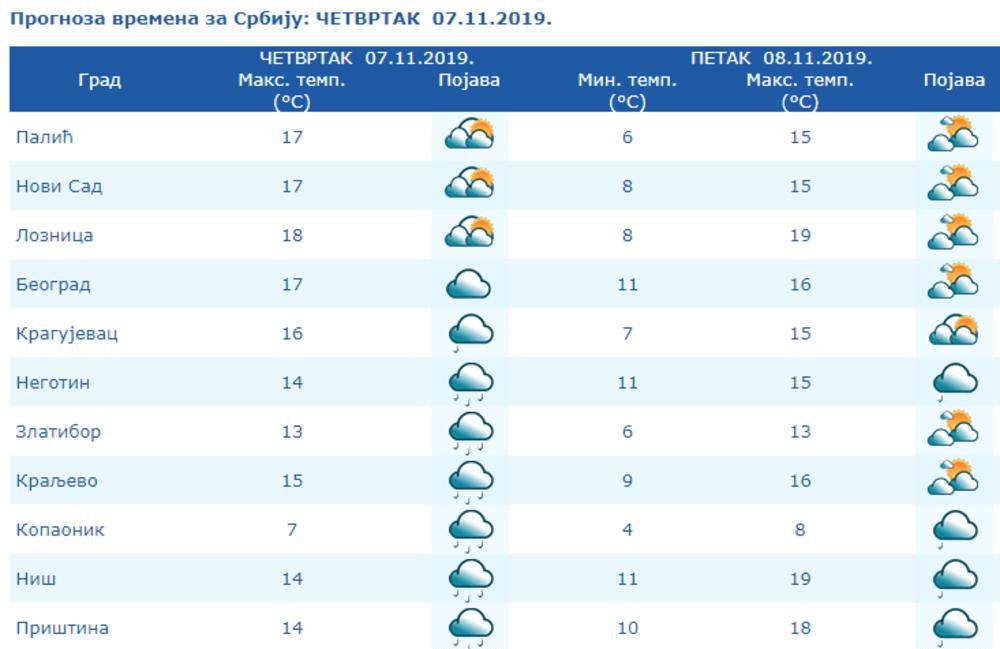 U Srbiji će biti oblačno vreme sa kišom, saopštio je Republički hidrometeorološki zavod (RHMZ).