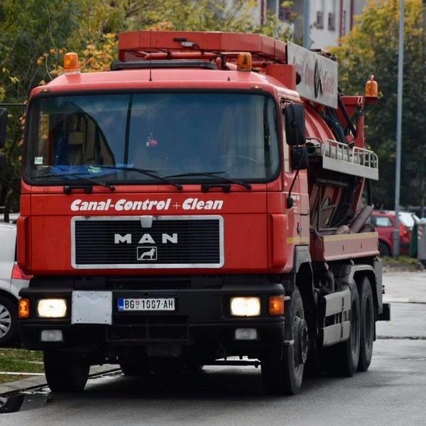 10.14 - Kamion koji služi za pranje ulica, kreće se oko zgrade