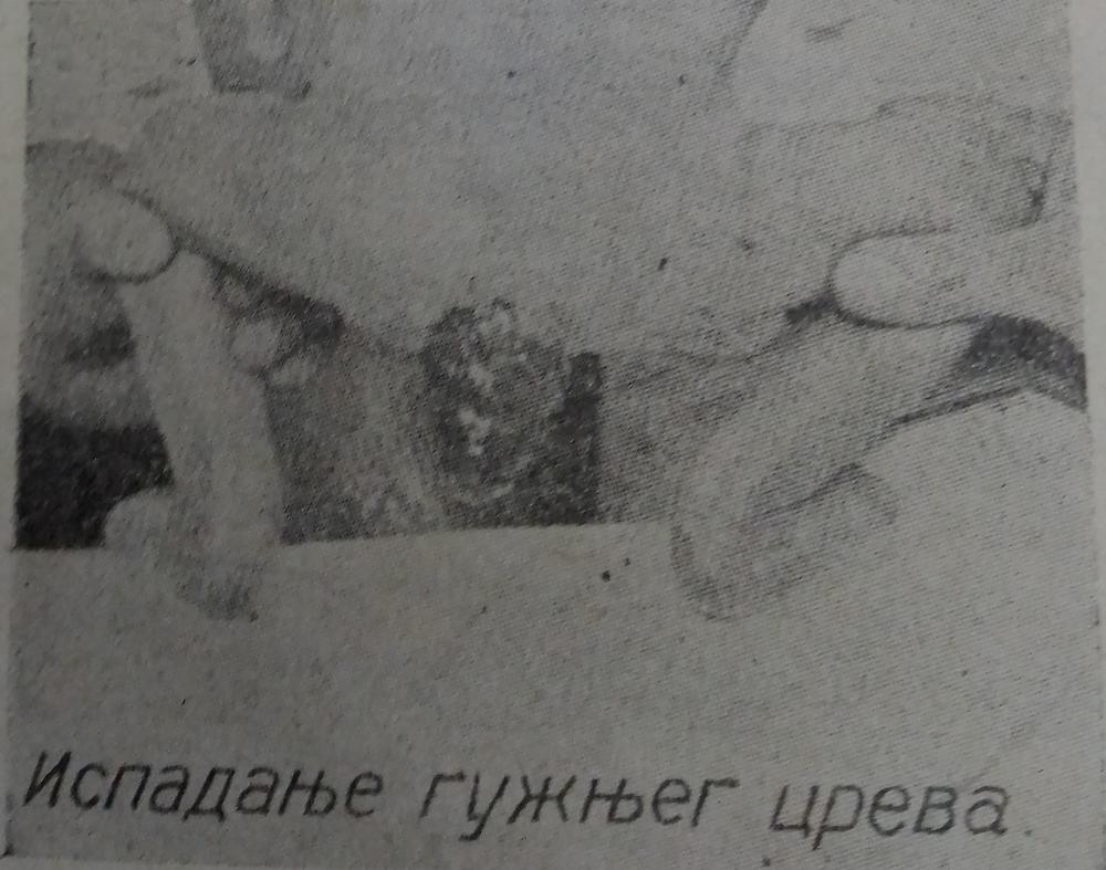 Kod odraslih a naročito kod dece se dešava da po nekad pri vršenju nužde ispadne guzno crevo, piše doktor Dobrivoje Popović u svom "Narodnom lekaru" iz 1925. godine.