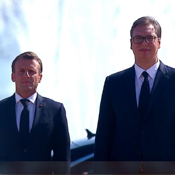 MAKRON SE POZDRAVIO SA PRAUNUKOM VOJVODE MIŠIĆA! Pružio mu je ruku na savezničkoj ceremoniji kod Trijumfalne kapije