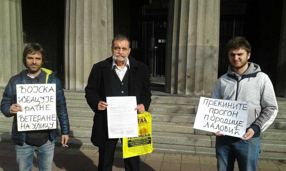 - Danas se navršava tačno 14 godina od kako je pukovnik Gojko Lalović nezakonito oteran u penziju 15.11.2005. godine, jer je ukazao na malverzacije u poklanjanju i dodeli vojnih stanova. Šest sudskih presuda koje su poništile sva akta o penzionisanju i proglasila ih nezakonitim nisu imala uticaja na Ministarstvo odbrane da pukovnika vrate na radno mesto. Umesto toga, sada uz pomoć izvršiteljke, i civilne i vojne policije žele da mu otmu i jedini krov nad glavom.