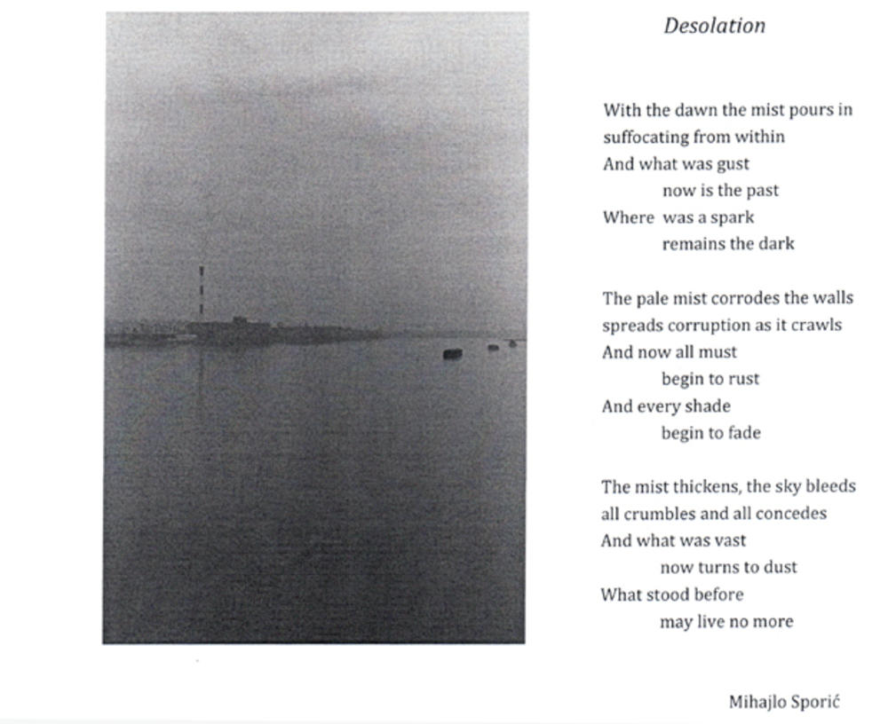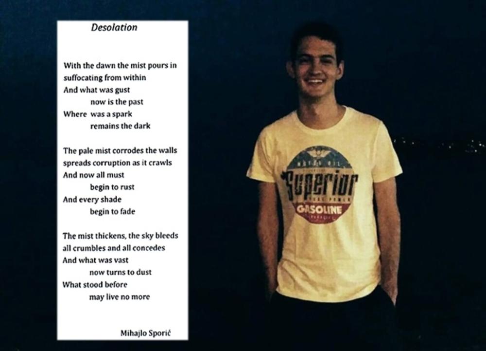Mihajlo Sporić je pred smrt napisao potresne tamne stihove na engleskom i pesmu nazvao "Pustoš" (Desolation)