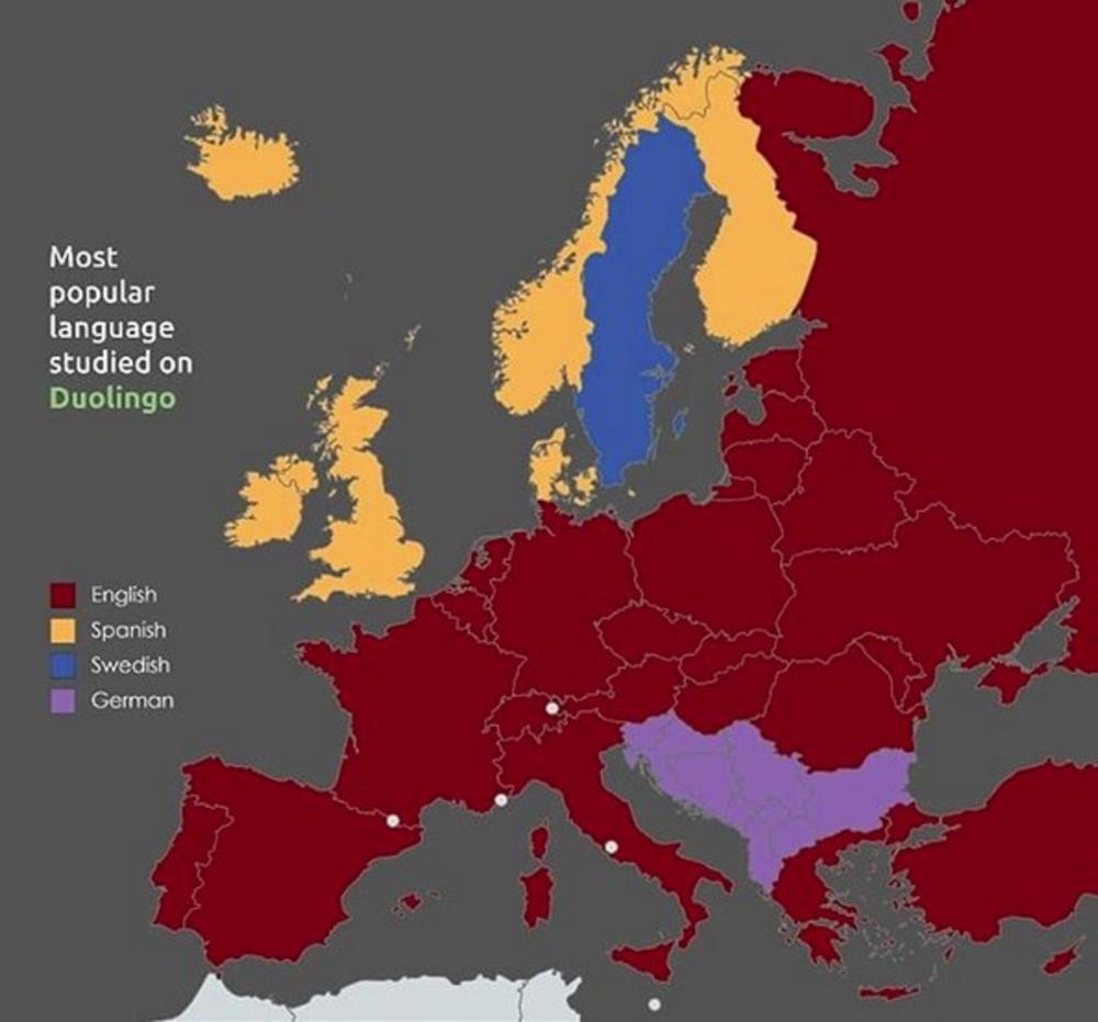 Ako je verovati ovoj mapi, narodi bivše Jugoslavije najradije uče nemački, jezik nekadašnjeg okupatora ovih prostora.