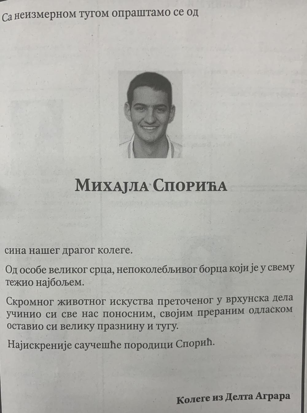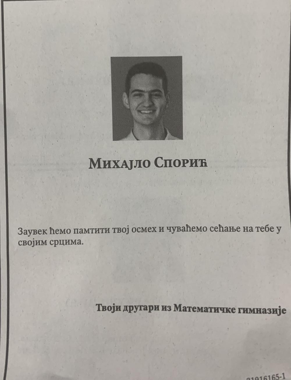 OSVANULA ČITULJA PREMINULOM FIZIČARU: Dirljive reči za momka od kog se danas OPRAŠTA CELA SRBIJA (FOTO)
