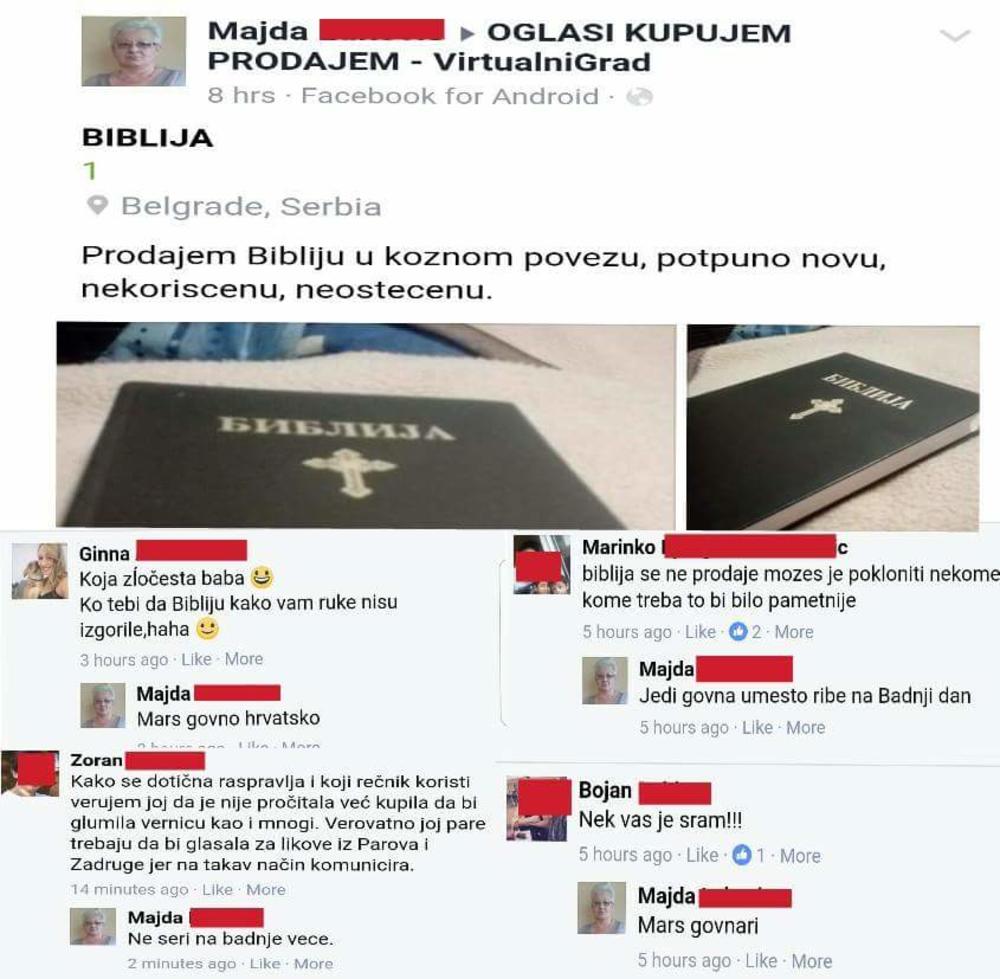 Tako je terala "go*no hrvatsko", "ostale go*nare", a kad joj je neko napisao da se Biblija ne prodaje već poklanja, teta Majda je načisto poludela.