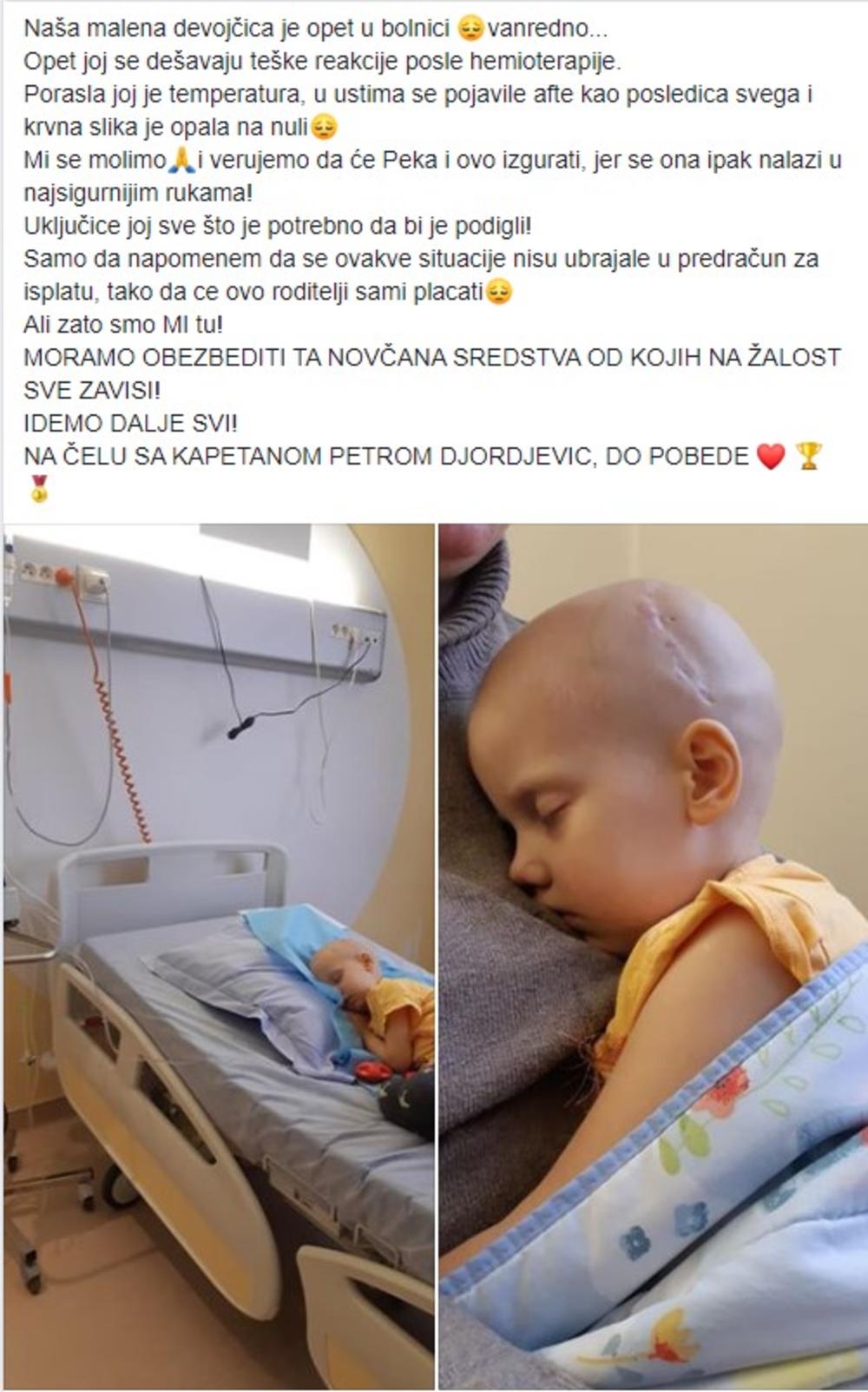 Petri se sinoć, nakon hemioterapije, pogoršalo stanje, temperatura joj je naglo skočila, u ustima joj se pojavile afte i krvna slika joj je opala na nuli, a zatim joj je uključeno sve što je potrebno da bi je podigli.