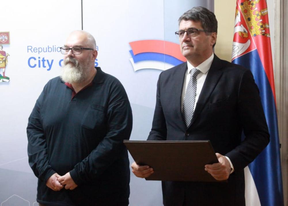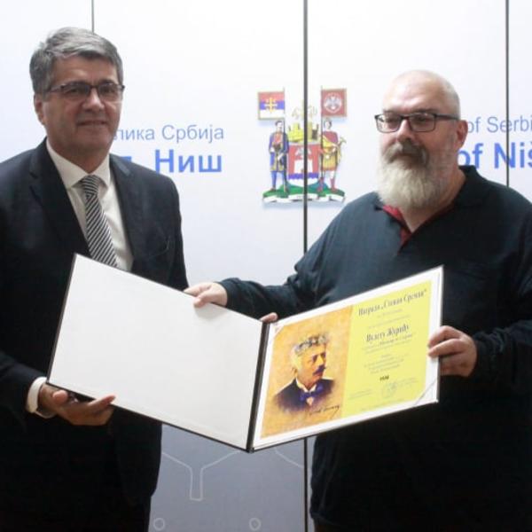 Nagradu je uručio Darko Bulatović ,gradonačelnik Niša