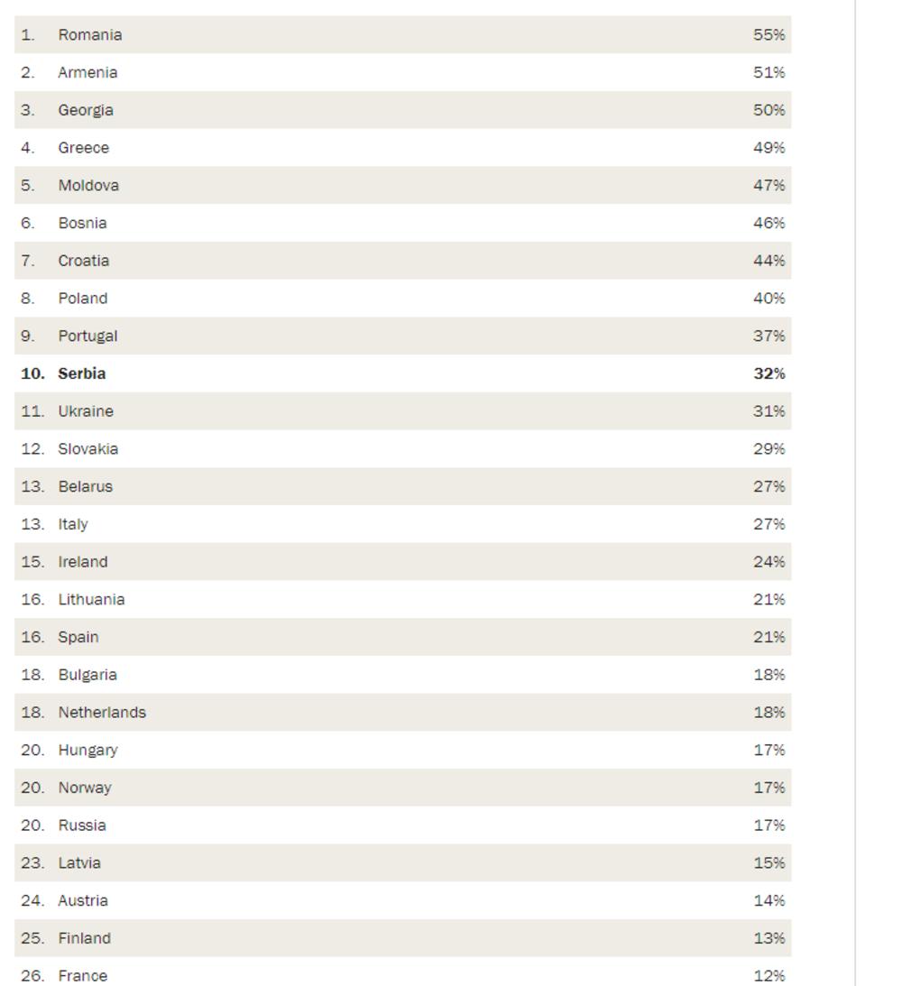 Srbija se nalazi među 10 najreligioznijih zemalja.