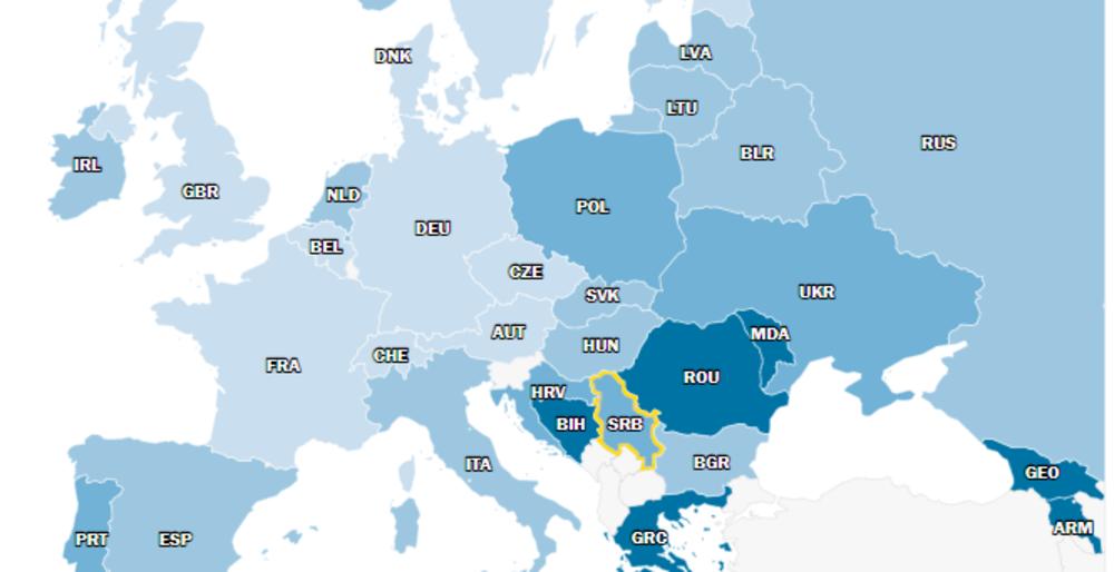 Ova karta interaktivnog je karaktera, pa omogućava i upoređivanje sa drugim zemljama.