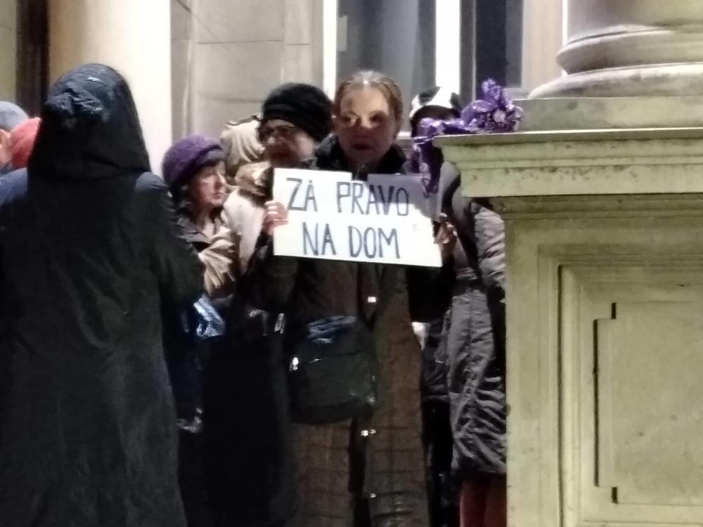 Ispred Skupštine grada Beograda održan je zakazani protest povodom Međunarodnog dana ljudskih prava, a organizovala ga je Združena akcija "Krova nad glavom".