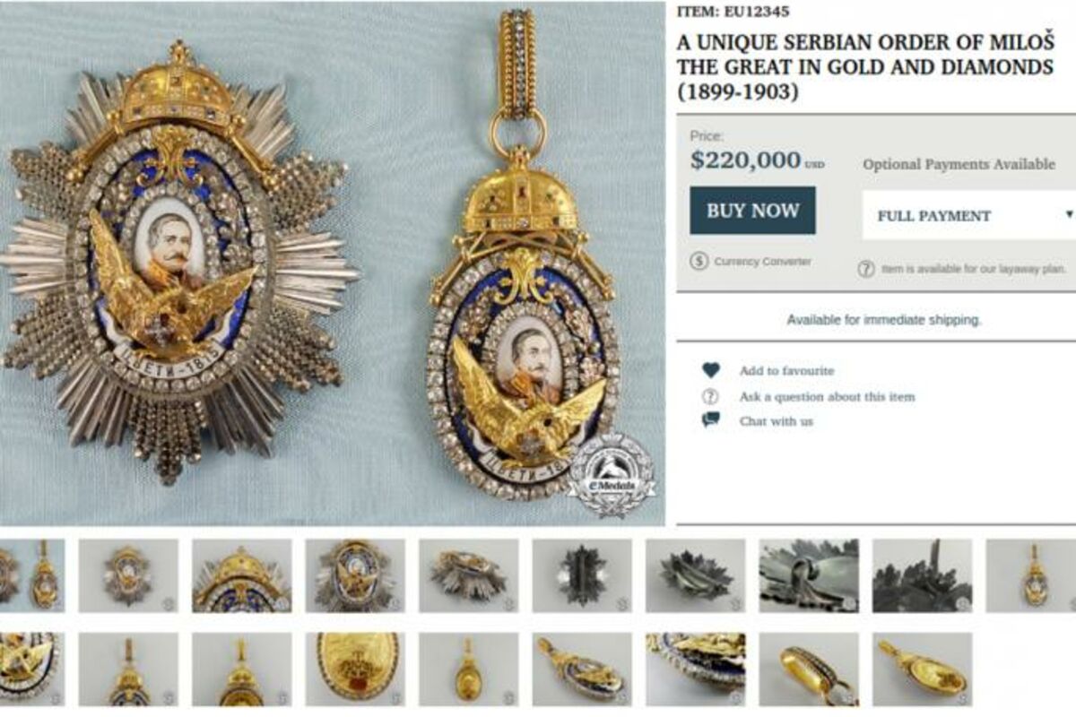 Ne postoji nijedan dokaz da je Orden Miloša Velikog sa brilijantima čija je prodaja oglašena na sajtu jedne strane aukcijske kuće zaista postojao!