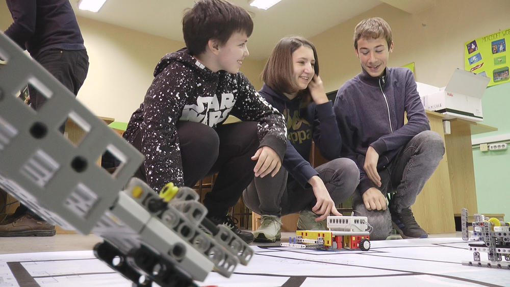 Timski duh i zajednički cilj najbitniji su za uspeh ovog srpskog informatičkog trojca, a svako ima svoj zadatak. Dok Dragica programira, dva dečaka njenu zamisao sprovode u delo - sklapaju prepreke i nastavke za robote.