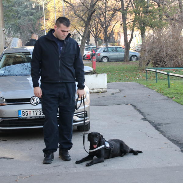 Naime, svi prisutni ispred centralnog ulaza Uprave carina Srbije imali su priliku da vide demonstaraciju veština novog službenog psa u otkrivanju droge, doniranog od carinske administracije Francuske.