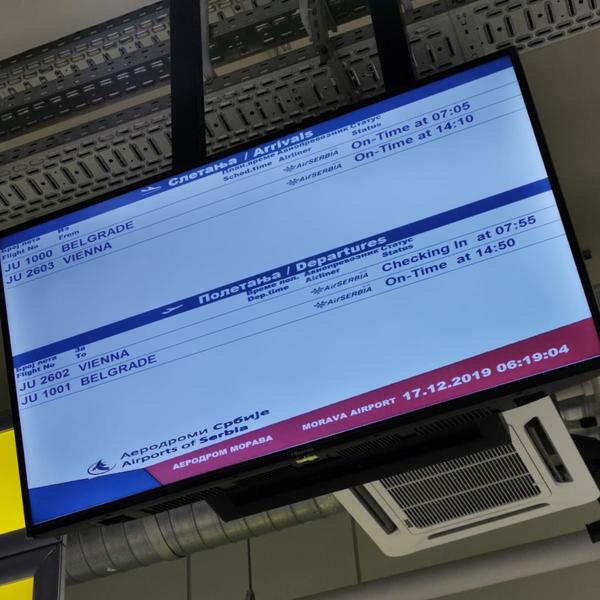 Prvi avion Er Srbije koji je u 07.15 trebalo da sleti na aerodrom "Morava" u Lađevcima, zbog magle će kasniti 45 minuta. Prvi putnici već su stigli u treću vazdušnu luku, po protokolu obavili sve kontrolne provere i čekaju da se ukrcaju u avion.