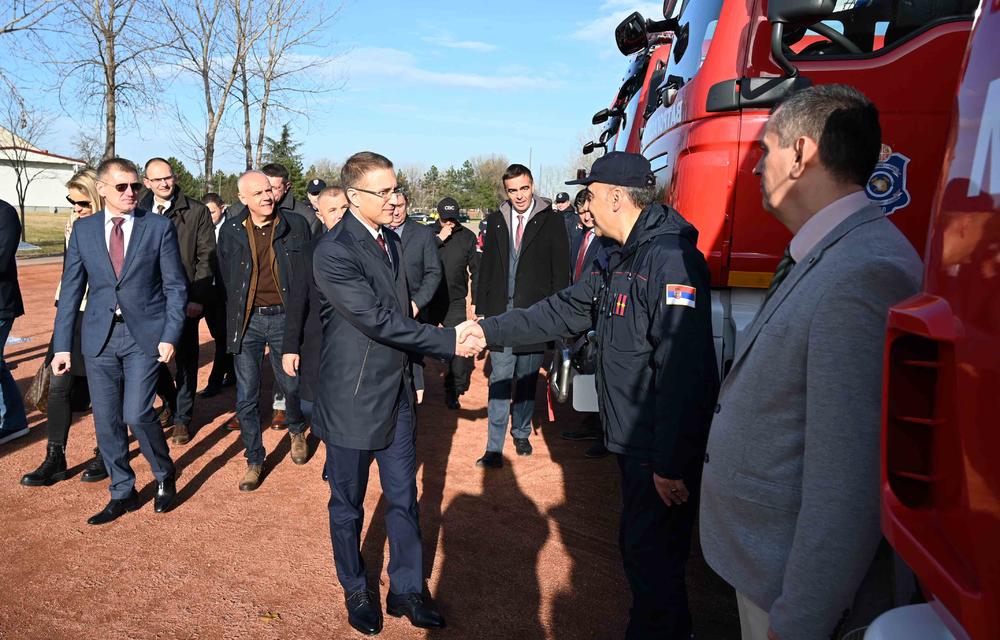 Potpredsednik Vlade Republike Srbije i ministar unutrašnjih poslova dr Nebojša Stefanović prisustvovao je danas primopredaji 20 vatrogasno-spasilačkih kamiona i 60 terenskih vozila Sektoru za vanredne situacije, koje je Ministarstvo unutrašnjih poslova nabavilo u cilju unapređenja uslova rada vatrogasaca-spasilaca.