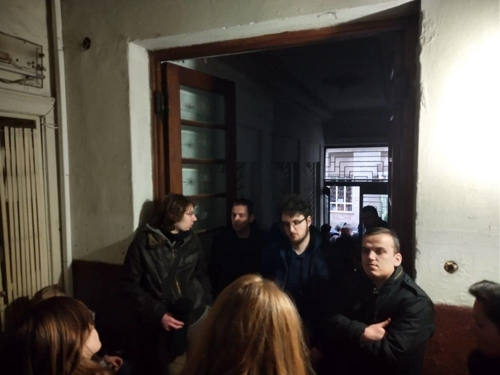Ispred stana u kojem žive Spomenka Marković, njen suprug, Spomenkina sestra I njihov sin okupilo se oko 20 ljudi, koji su tu da zaštite ovu porodicu. Na čelu ove akcije, kao i uvek je Združena akcija "Krov nad glavom".