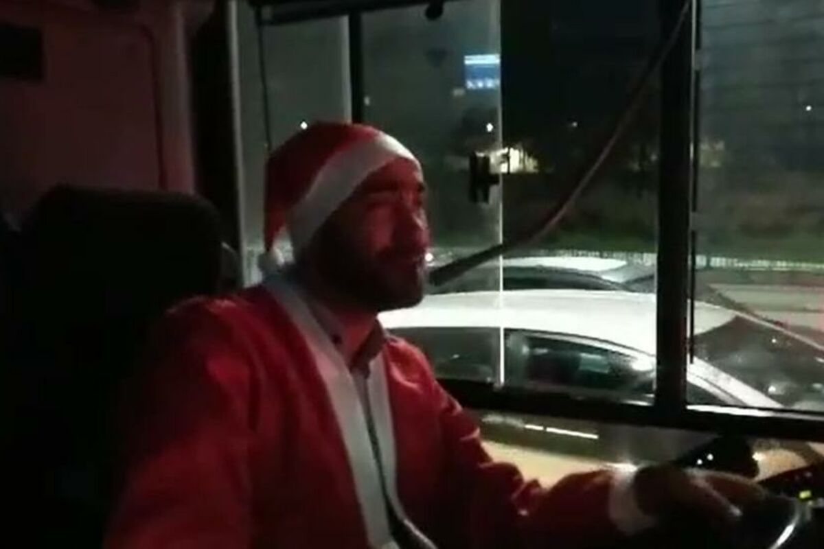 Na liniji 35, "uhvatili" smo ga na delu! Srpski Deda Mraz - vozač po imenu Ljuba Marinković uveseljava putnike pesmom.