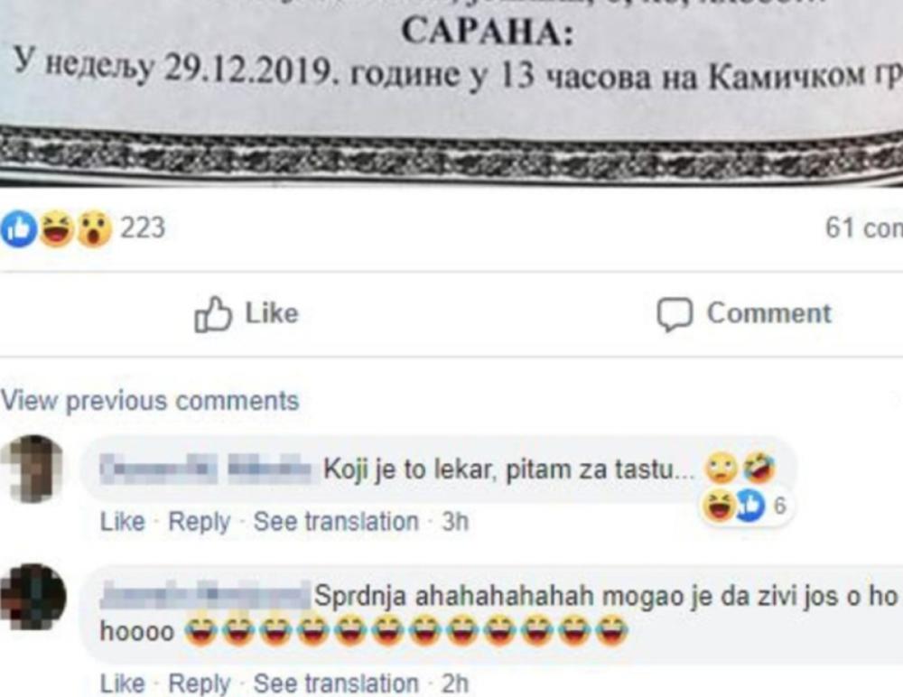 Mnogi su komentarisali ovu objavu na Fejsbuku, alii onih koji su se šalili na račun pokojne žene.