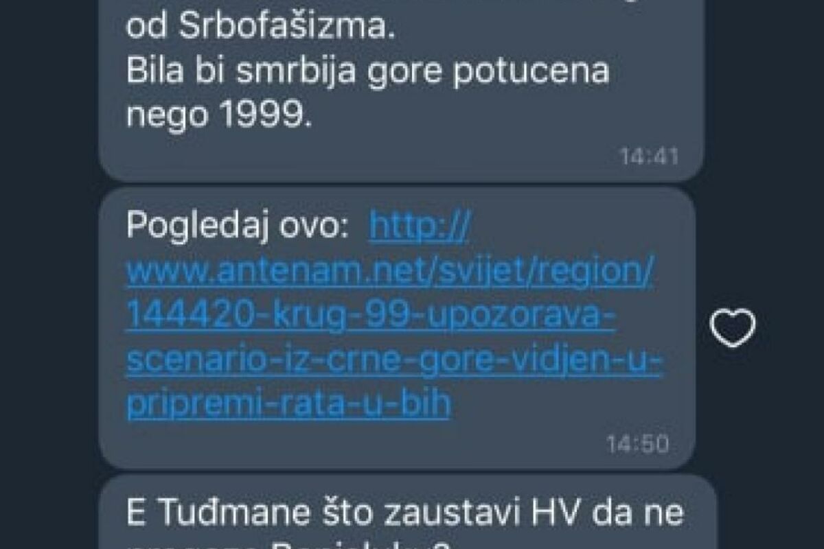 Takođe jedan od članova grupe izražava žal i "što je Tuđman zaustavio HV da ne pregaze Banja Luku". "Treba si ih puštiti i Banjaluku zauzeti, Jer je HV bila došla do Banjaluke. Trebalo je Srbe poraziti do korena" - stoji, ne baš najpismenije sročeno, pored ostalog, u zatvorenoj viber grupi "Krsto Zrnov Popović".