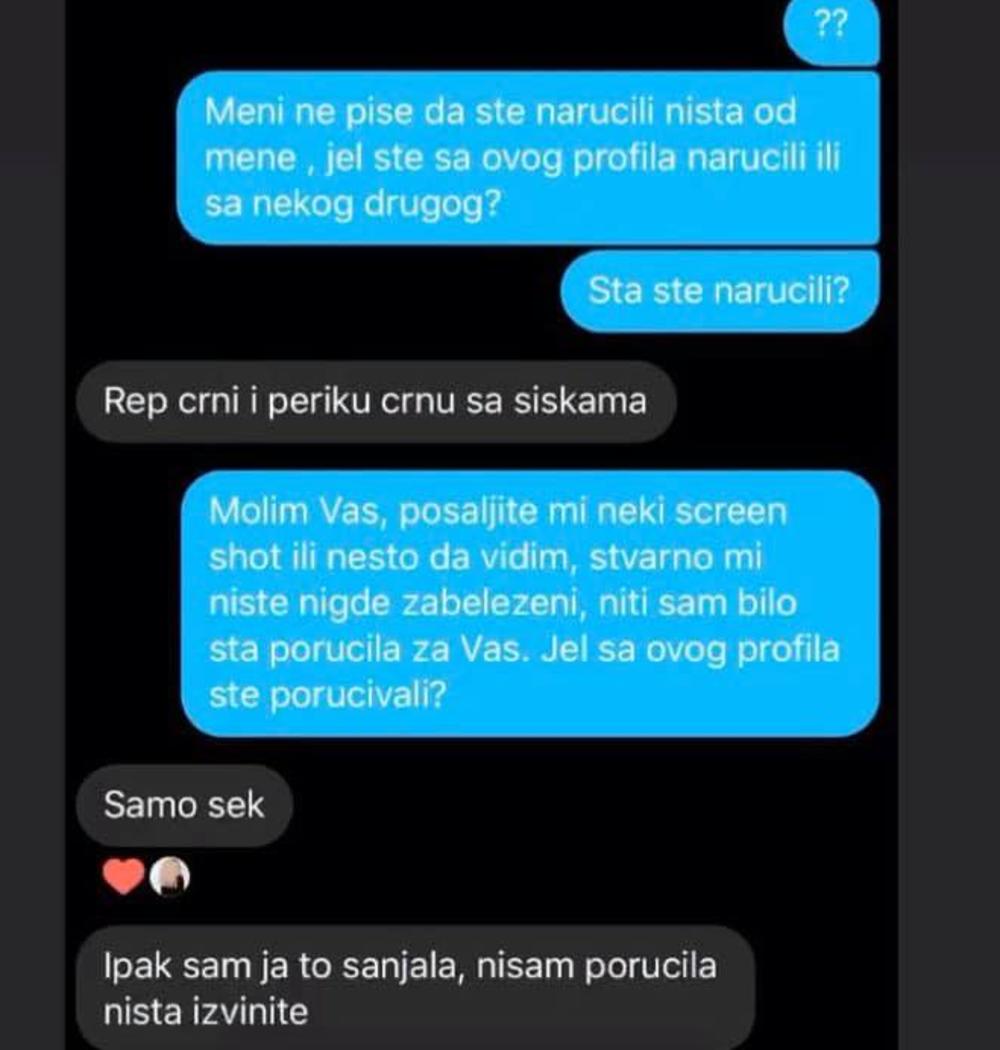 Jedna žena se javila kako bi pitala za svoju narudžbinu, no nigde nije posojao trag o tome da je bilo šta poručila. Na kraju se ispostavilo, odnosno žena je to i sama napisala kako je narudžbu perike samo sanjala.