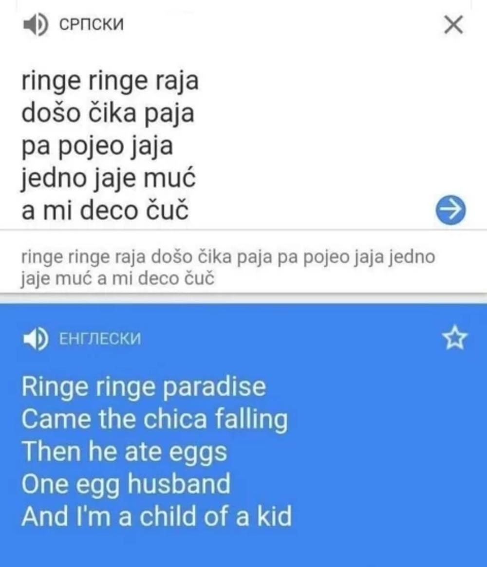 Nekome je palo na pamet da u gugl prevodilac ubaci reči pesme "Ringe ringe raja", a prevod koji je dobio je presmešan, uverite se i sami: