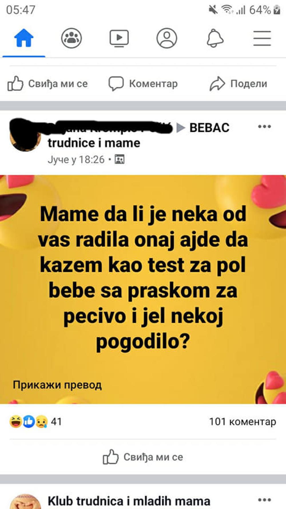 Tako je na društvenim mrežama jedna žena ostavila komentar kako da se sazna pol bebe uz pomoć sodebikarbone, što ni malo nije za verovati.
