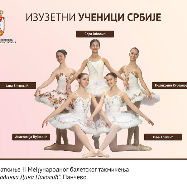 Balerine iz Baletske škole Lujo Davičo, Laureatkinje II Međunarodnog baletskog takmičenja su balerine iz Baletske škole Lujo Davičo, Kostadinka Dina Nikolić, Pančevo, Jana Zimonjić, Sara Jaćović, Polikseni Kurtanović, Anastasija Vujnović i Olja Aleksić.