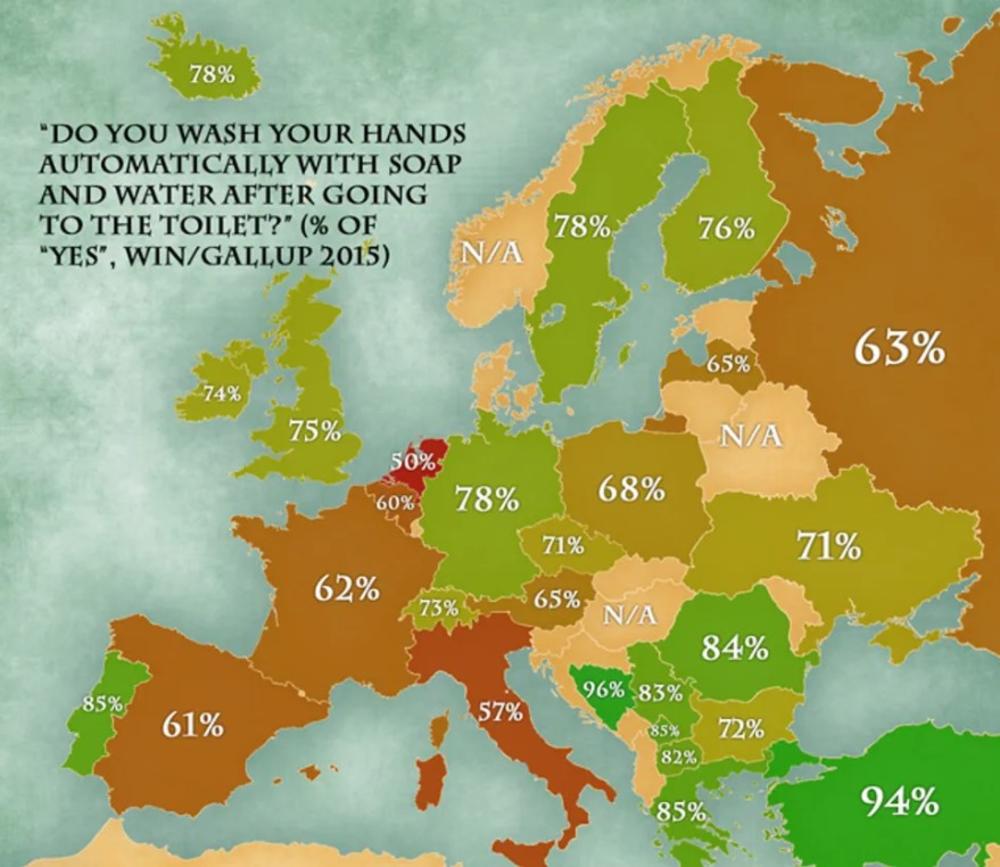 IZAŠLA MAPA NA KOJOJ SE VIDI KO KOLIKO PERE RUKE U EVROPI! Rezultati su NEVEROVATNI, nema šanse da pogodite GDE SMO