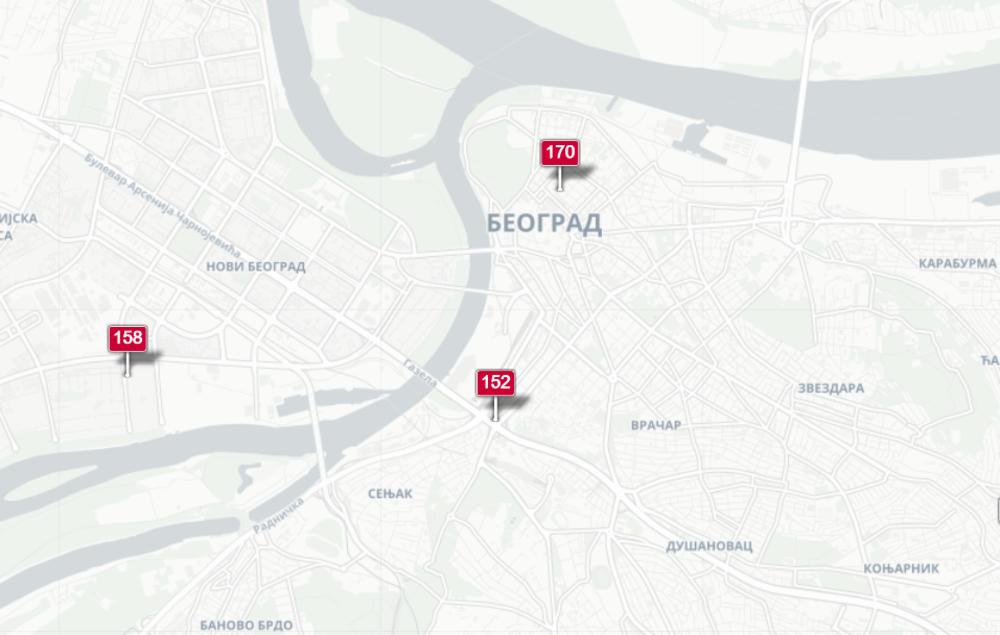 U Starom gradu vazduh je najzagađeniji, prema merenjima stepen zagađenosti je 170, što znači da je na snazi crvena boja, odnosno da je vazduh okarakterisan kao nezdrav. Situacija nije mnogo bolja ni na Novom Beogradu gde je stepen zagađenosti čak 158, kao i na Mostaru gde je zagađenost 152.