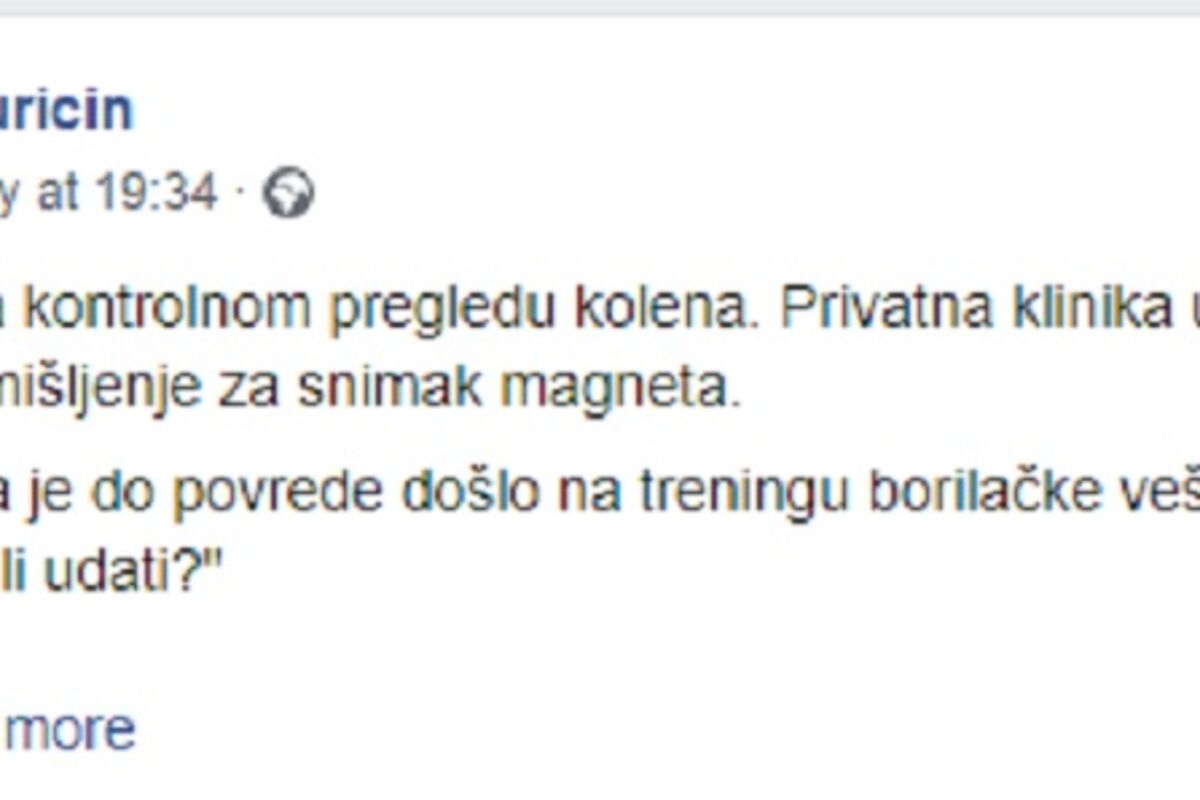 Kod ortopeda na kontrolnom pregledu kolena. Privatna klinika u Novom Sadu. Tražim stručno mišljenje za snimak magneta. Posle uvertire da je do povrede došlo na treningu borilačke veštine, prvo pitanje je "Jeste li udati?"