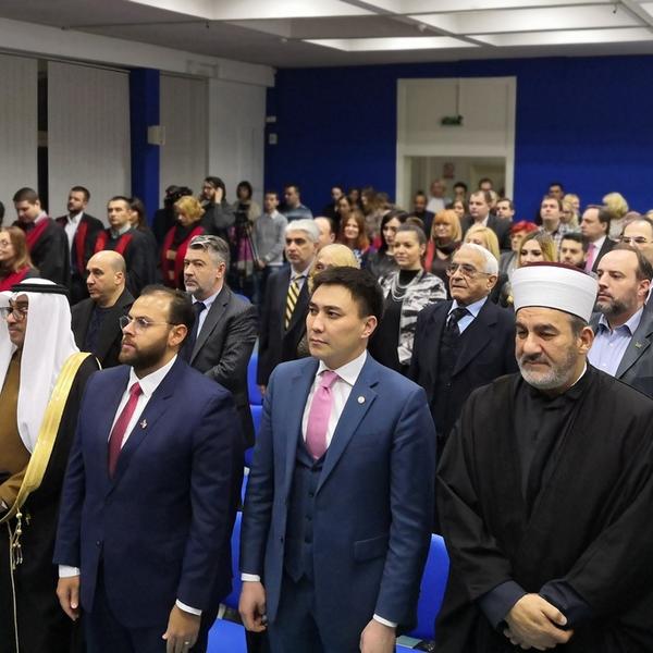 Generalni sekretar Muslimanske svetske lige El Isa se u prepunoj velikoj sali Alfa BK univerziteta zahvalio na izuzetnoj počasti koja mu je priređena.